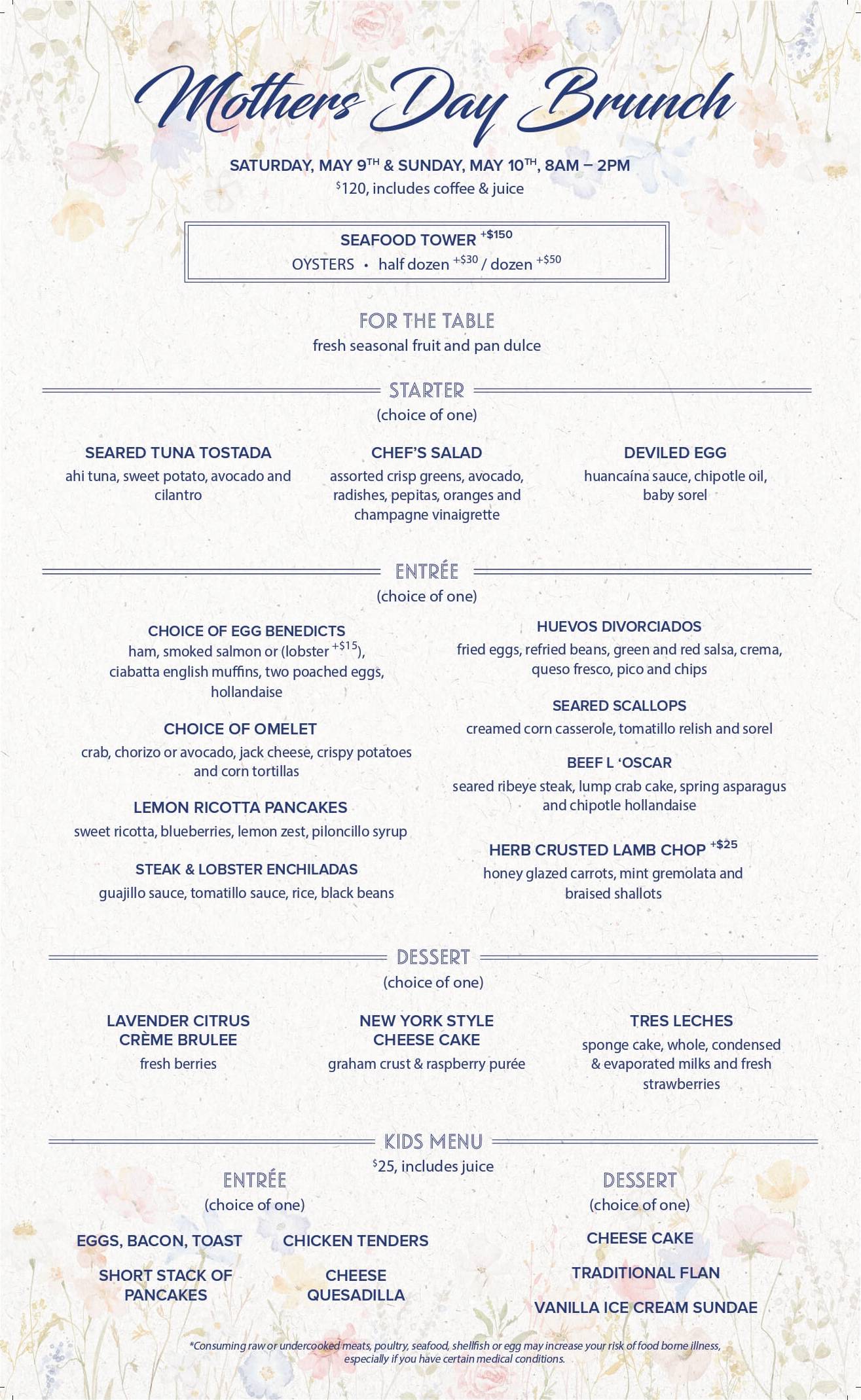 Celebrate Mother's Day with an elevated oceanfront experience. Join us for a special Prix Fixe Brunch Menu crafted for a beautiful and memorable holiday gathering.